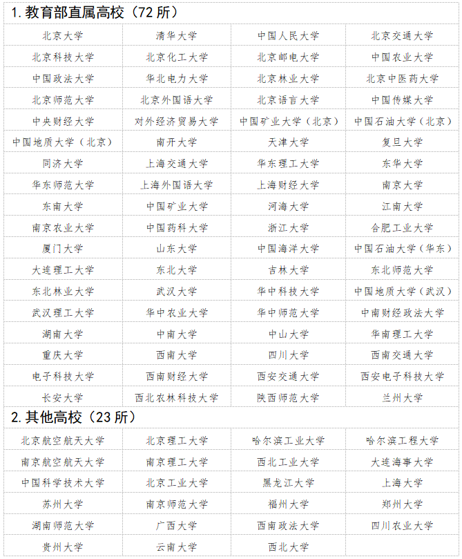 2023年高考高校專項(xiàng)計(jì)劃招生學(xué)校名單1.教育部直屬高校(72所)北京..