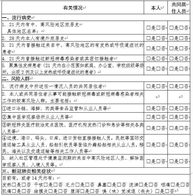 2022年遼寧省個人健康情況排查表 姓名: 體溫: ..