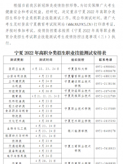 寧夏:關于我區(qū)高職分類招生職業(yè)技能測試時間的通告..