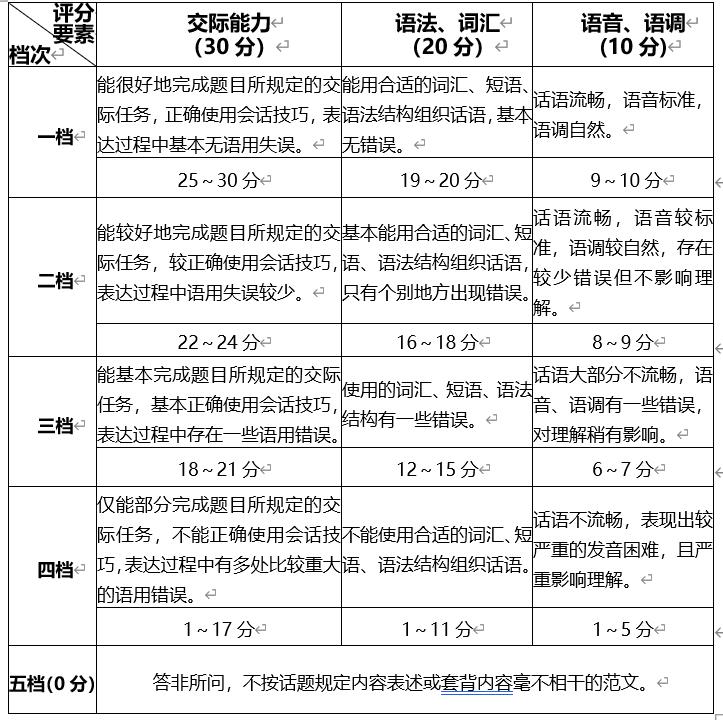 查看更多>>2021-12-242022福建高考外語(yǔ)口試題型及評(píng)分標(biāo)準(zhǔn)外語(yǔ)口試考生成績(jī)報(bào)告統(tǒng)一采..
