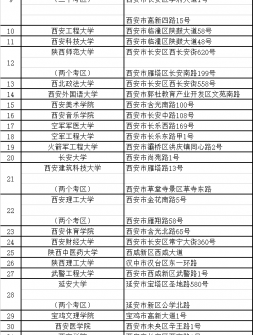 2022年陜西省全國碩士研究生招生考試考點一覽表序號 考 點 ..