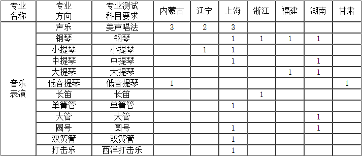 計(jì)劃:音樂表演2020年上海13人,山東4人