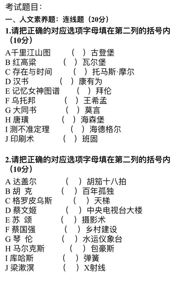 考題要求:三小時(shí)(25分鐘休息5分鐘)
