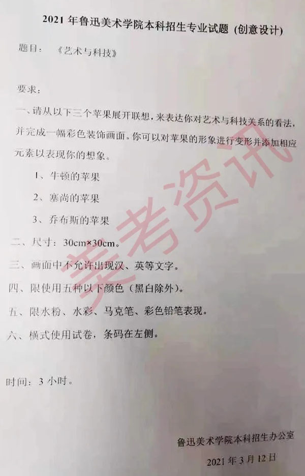 2021年魯迅美術(shù)學(xué)院設(shè)計類專業(yè)考題(遼寧考生)