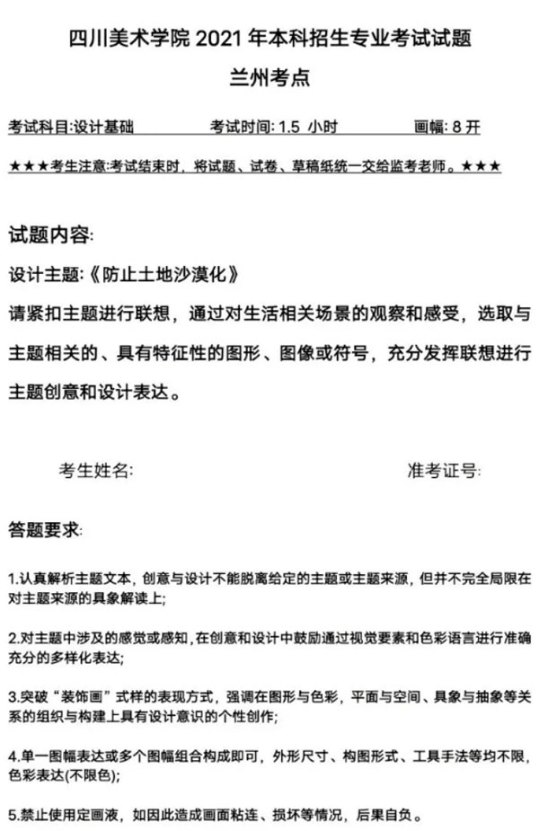 2021年四川美術學院設計類考題(蘭州、長沙、鄭州考點)