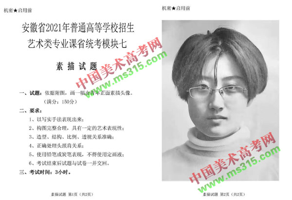 2021年安徽美術(shù)統(tǒng)考(聯(lián)考)考試題目