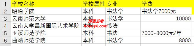 玉溪師范學(xué)院 本科 書(shū)法 7000-8000元/年
