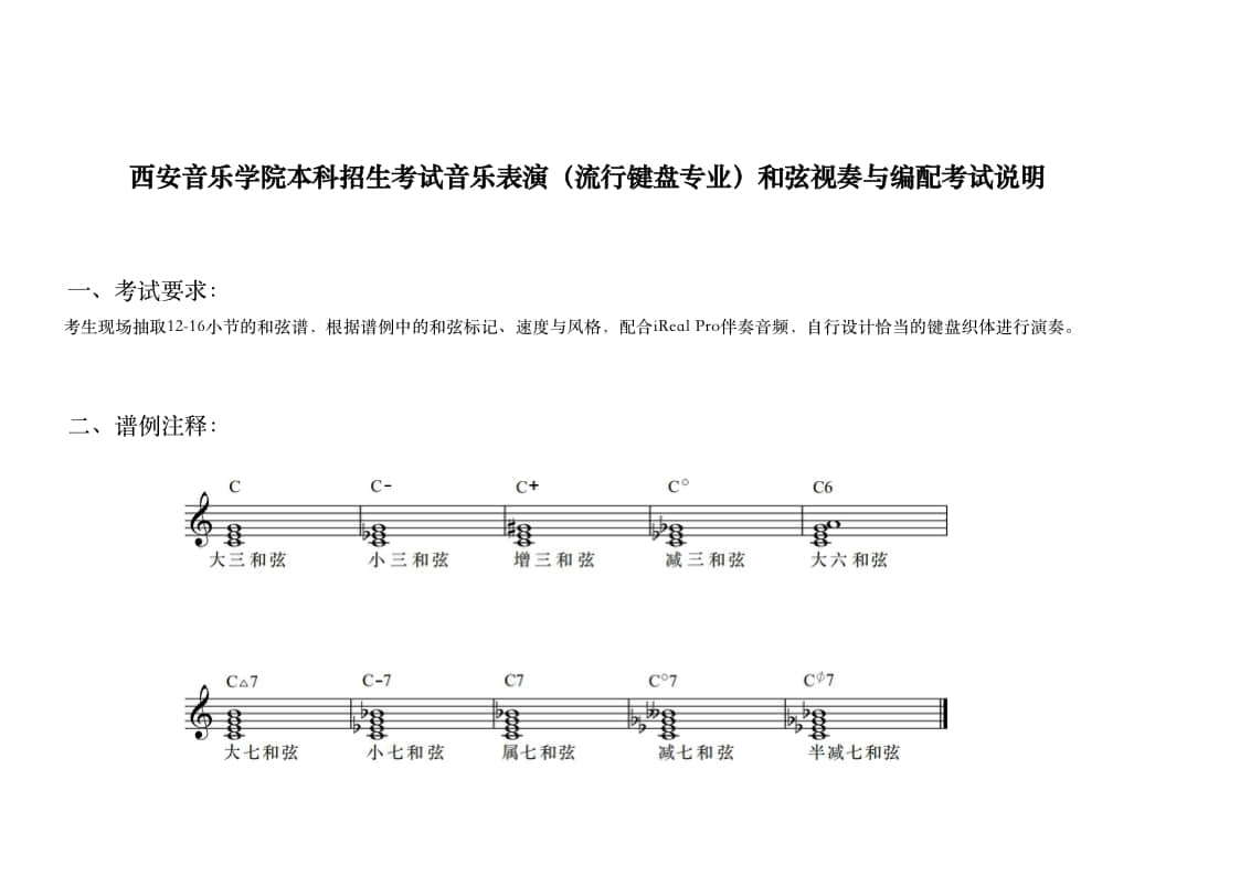 西音??剂餍墟I盤和弦視奏與編配考試說明 西安音樂學(xué)院本科招生..