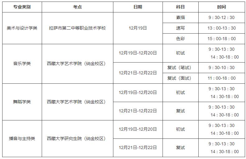 我區(qū)藝術(shù)加試僅設(shè)拉薩考區(qū)。完成網(wǎng)上信息填報(bào)的考生可在報(bào)名系統(tǒng)中打印準(zhǔn)考證。準(zhǔn)考證打印時間:2021年12月14日至18日。