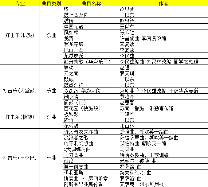 打擊樂藝考曲目推薦 具體包含打擊樂(排鼓),打擊樂(大堂鼓),打擊..