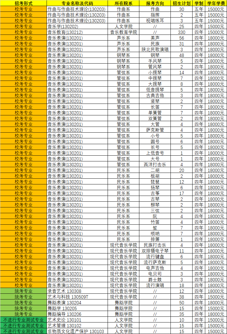 2025年西安音樂學(xué)院各專業(yè)招生人數(shù)/學(xué)費(fèi)招考形式 專業(yè)名稱及..