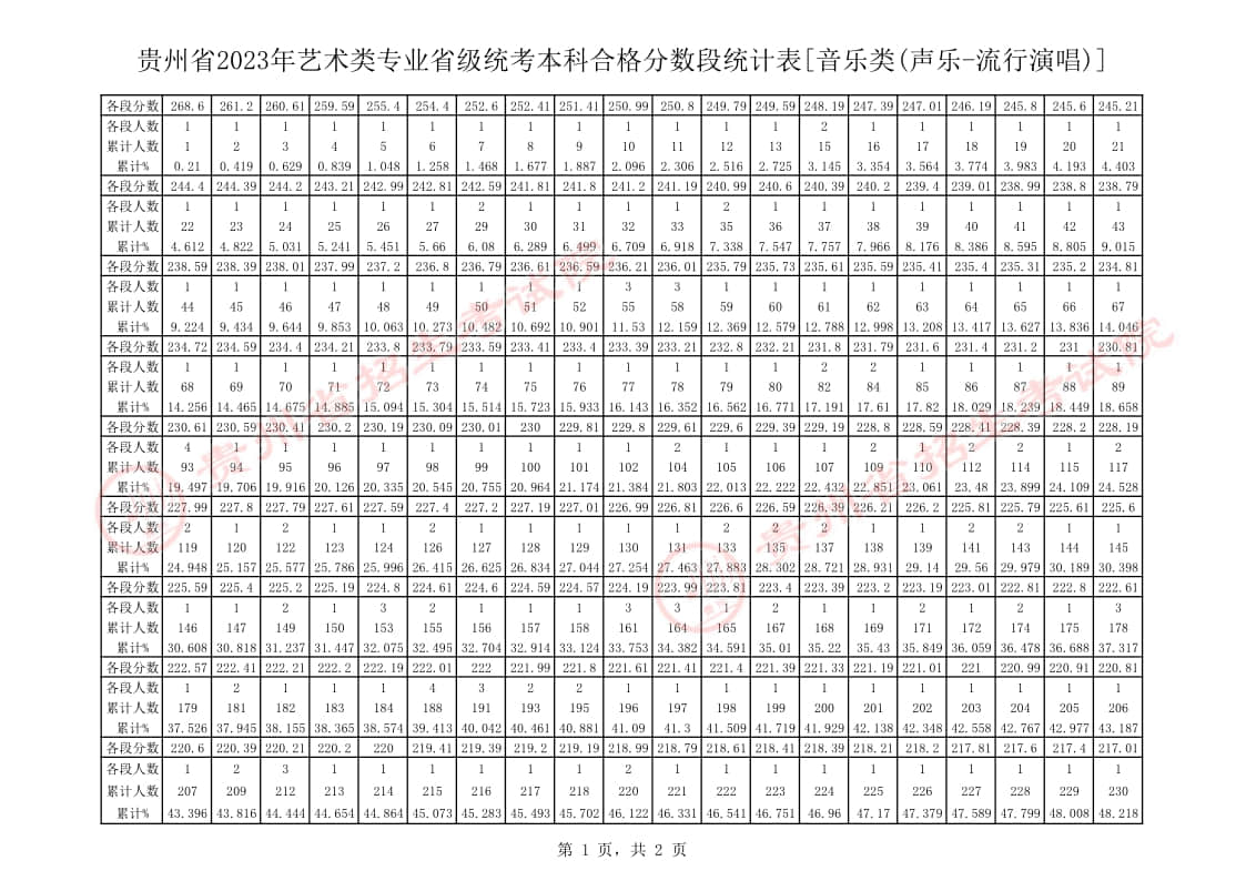 查看更多>>2023-03-08貴州省2023年音樂類(聲樂-民族/美聲)專業(yè)課藝考統(tǒng)考一分一段表..