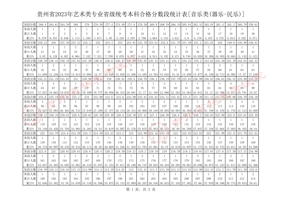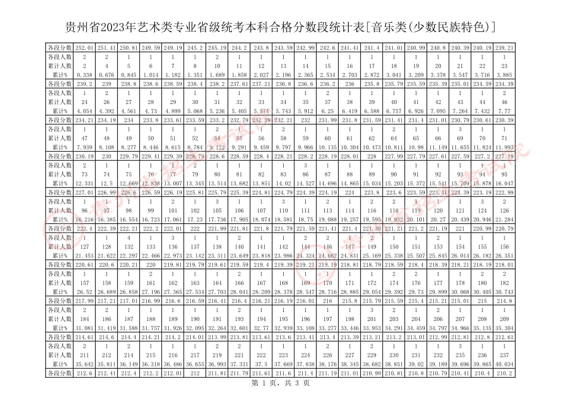 查看更多>>2023-03-05貴州省2023年音樂類(少數(shù)民族特色)專業(yè)課藝考統(tǒng)考一分一段表..