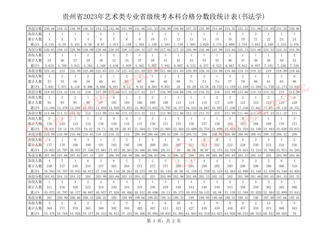 查看更多>>2023-02-26貴州省2023年書(shū)法學(xué)專(zhuān)業(yè)課藝考統(tǒng)考一分一段表..