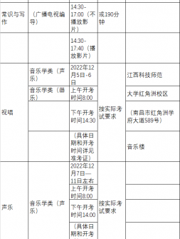 查看更多>>2022-11-29江西:2023年普通高校招生藝術(shù)類專業(yè)統(tǒng)一考試各科目考試時(shí)間、考點(diǎn)..
