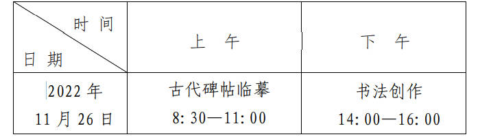 查看更多>>2022-11-03河南省2023年藝考書法類專業(yè)統(tǒng)考考試內(nèi)容/考試地點(diǎn)/考試時(shí)間/注..
