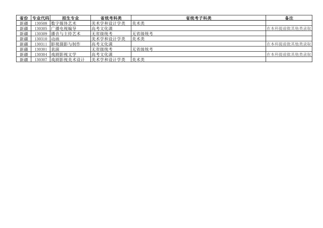 查看更多>>2022-01-10新疆藝術(shù)學(xué)院2022年本科藝術(shù)類專業(yè)與各省統(tǒng)考子科類對應(yīng)關(guān)系表..