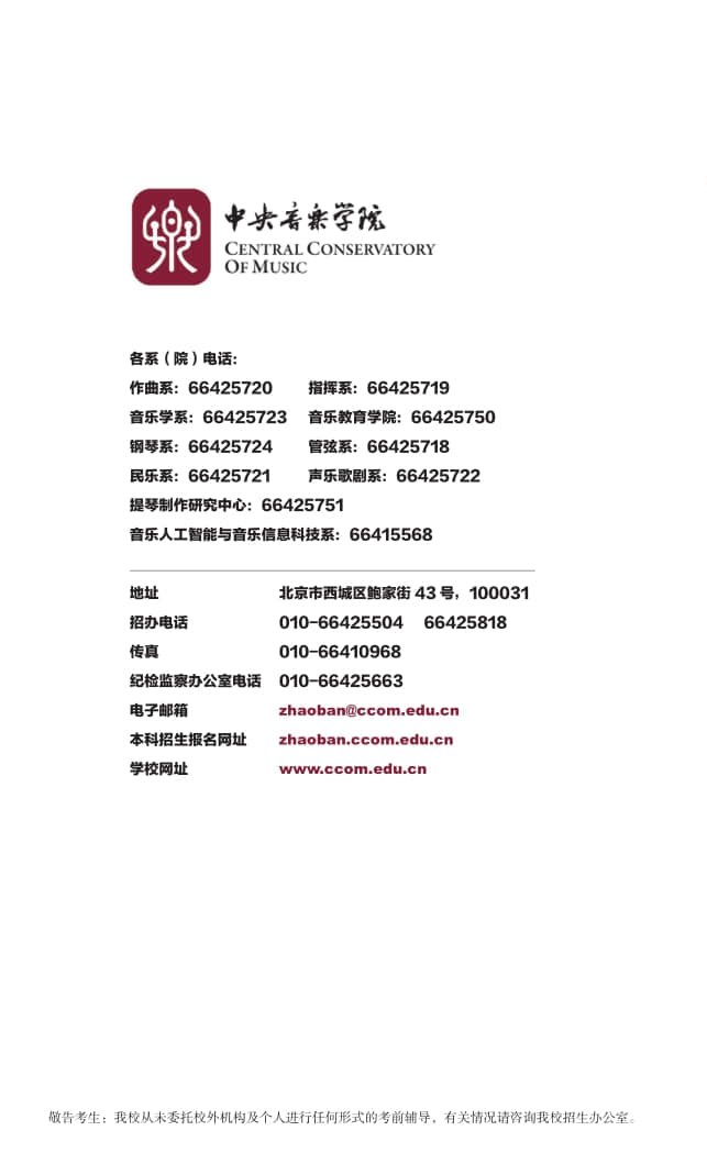 2022年中央音樂學院本科招生簡章..