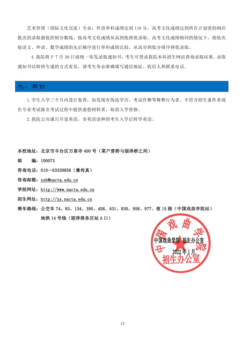 中國戲曲學院2022年本科招生簡章 ..