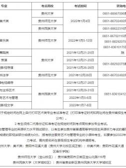 查看更多>>2021-11-23貴州省2022年普通高等學校招生藝術(shù)類專業(yè)統(tǒng)考時間表專業(yè) 考點..