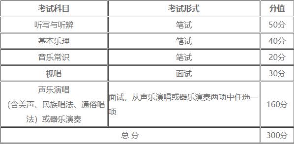 音樂(lè):視唱練耳(口試)60 分、專業(yè)主科240 分。