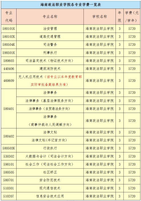 學院按照海南省物價局、財政廳和教育廳規(guī)定的收費標準對學生進行收費。學生就讀海南政法職業(yè)學院全日制三年制??茖I(yè),每學年學費5720元。學生就讀海南政法職業(yè)學院與本科院校合作培養(yǎng)(3+2學制)的“海南省高職與普通本科3+2分段培養(yǎng)試點項目專業(yè)”,前三年每學年學費5720元,后二年每學年按照合作本科院校的相應專業(yè)學費標準繳納學費。海南政法職業(yè)學院住宿費:公寓樓六人間1050元/學年。