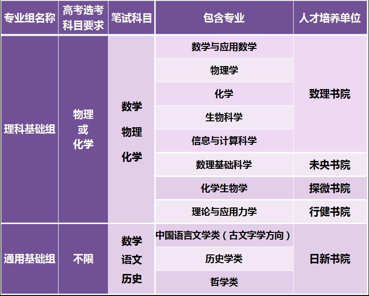 基礎(chǔ)理科學(xué)術(shù)類專業(yè)包括:數(shù)學(xué)與應(yīng)用數(shù)學(xué)、物理學(xué)、化學(xué)、生物科學(xué)、信息與計(jì)算科學(xué),旨在選拔并培養(yǎng)在基礎(chǔ)理科領(lǐng)域有突出特長且有志于從事相關(guān)基礎(chǔ)研究的學(xué)生。