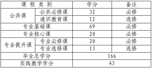 表 1 本科階段學(xué)分要求