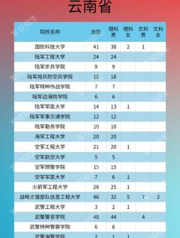 2020年軍隊院校在云南招生計劃,具體如下所示:院校名稱 總數(shù) ..