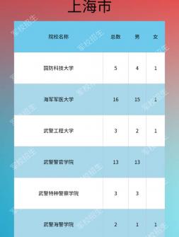2020年軍隊院校在上海招生計劃,具體如下所示:院校名稱 總數(shù) ..
