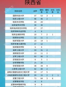 2020年軍隊院校在陜西招生計劃,具體如下所示:院校名稱 總數(shù) ..