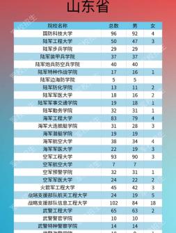 2020年軍隊院校在山東招生計劃,具體如下所示:院校名稱 總數(shù) ..