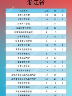 2020年軍隊院校在浙江招生計劃,具體如下所示:院校名稱 總數(shù) ..