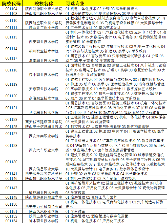陜西省3+2各院校開(kāi)設(shè)專(zhuān)業(yè)大全 以下學(xué)校招生,學(xué)生學(xué)習(xí)時(shí)間為5年:其..